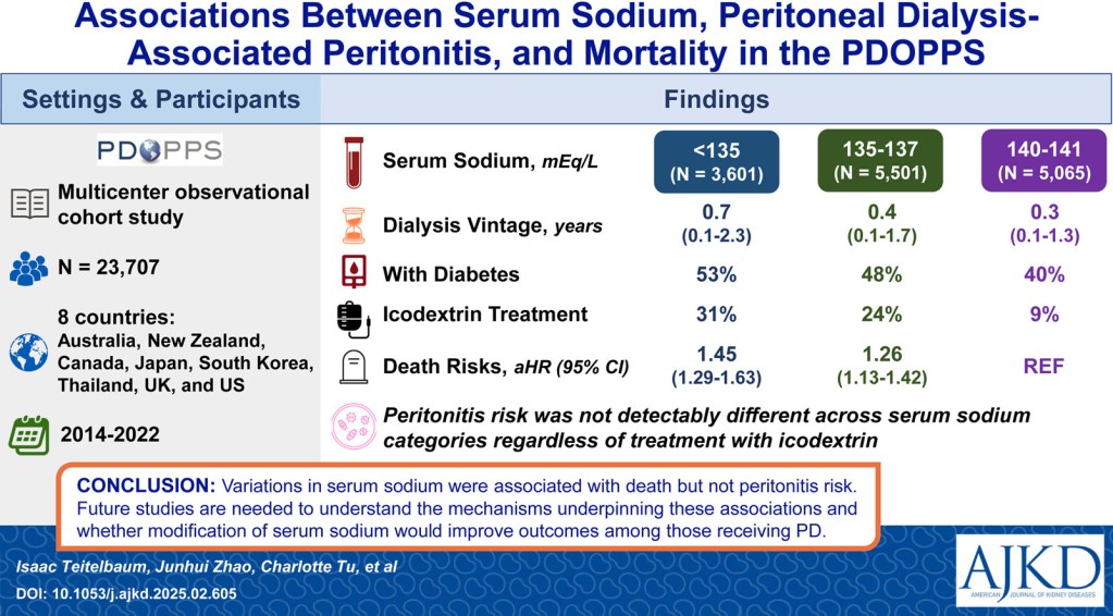 Associations Between Serum Sodium, Peritoneal Dialysis–Associated Peritonitis, and Mortality in the Peritoneal Dialysis Outcomes and Practice Patterns Study (PDOPPS) by Isaac Teitelbaum et al.