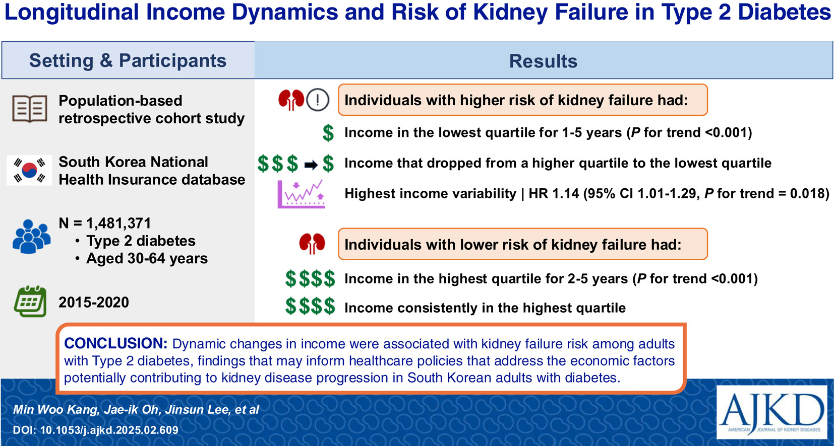 Longitudinal Income Dynamics and Risk of End-Stage Kidney Disease in Type 2 Diabetes: A South Korean Population–Based Cohort Study by Min Woo Kang et al.