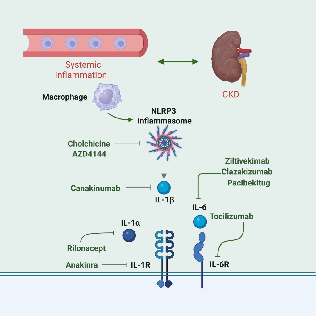 Chronic systemic inflammation, triggered by innate immune system activation, is a key driver of both chronic kidney disease (CKD) and associated atherosclerosis and cardiovascular disease. In a Mini Review recently published in AJKD, authors Nowak and Chonchol discuss evidence of the presence of chronic systemic inflammation in CKD, highlighting novel therapeutics that have recently emerged to target CKD-related chronic inflammation in recently completed and ongoing clinical trials.