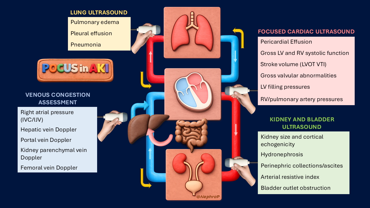 At the end of the day, everything comes back to the hemodynamic circuit. Kidney ultrasound is foundational. It rules out obstruction and gives us insight into chronicity. But most real decisions in AKI revolve around the balance between forward flow, venous pressures, and extravascular fluid. Muddy brown casts do not give us a free pass. They do not shield the kidney from ongoing hemodynamic injury, and they certainly do not eliminate the need to assess the circulation while we provide supportive care. And let’s be honest. As nephrologists, we do not want to drift into irrelevance in the ICU by defaulting to “fluid removal per ICU team” simply because we are not comfortable assessing hemodynamics ourselves.