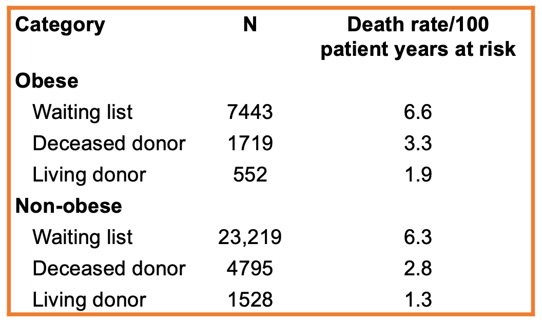 It has been well described that obesity is common at the time of kidney transplant, with up to 30% of patients receiving a kidney transplant having obesity. Importantly, about 2% have been described as class III obesity with a BMI ≥ 40 kg/m2